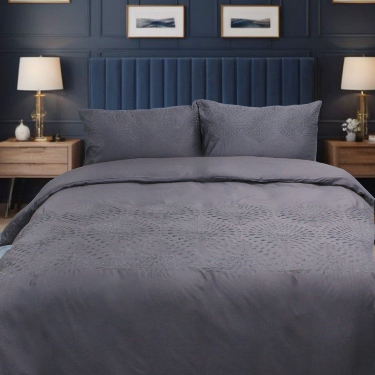 Pia Embroidered Duvet Cover Set T400 Charcoal